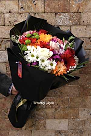 Description: Our bouquet prepared with 5 roses and colorful seasonal wild flowers will add color to your day.