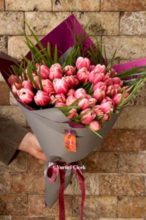Description: 41 pieces You will make your loved ones happy with a special bouquet made of pink tulips.