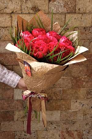 Description: The fragrant bouquet prepared with 9 fuchsia color peonies is ready for your loved ones.