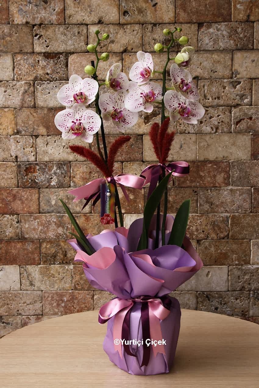 Description: With Pink Belly White Orchid, you can immediately make the most special surprise for your loved ones. Item Size: 60 cm