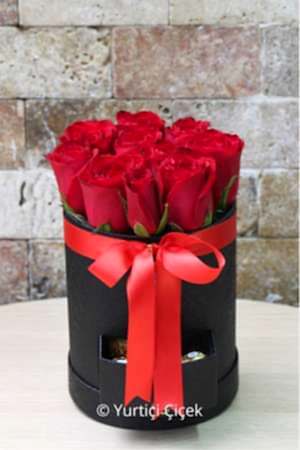 Description: You can also send tasty chocolates to your loved ones with the design prepared with rose from 8 to 11 in the round box with drawers.